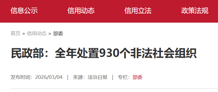 2025年,民政部指导各地民政部门深入推进打击整治非法社会组织工作,坚决防止非法社会组织反弹回潮。全年共处置非法社会组织930个,其中取缔203个、劝散339个、自行解散321个、引导登记67个,打击...