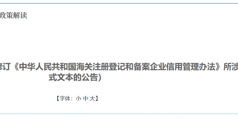 修订《中华人民共和国海关注册登记和备案企业信用管理办法》...