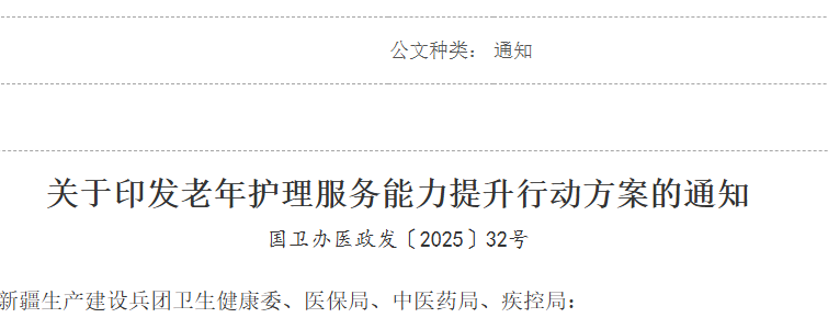 为深入贯彻实施积极应对人口老龄化国家战略,着力提升老年护理服务能力,有效对接老年人多元化、差异化护理服务需求,国家卫生健康委、国家医保局、国家中医药局、国家疾控局制定了《老年护理服务能力提升行动方案》...