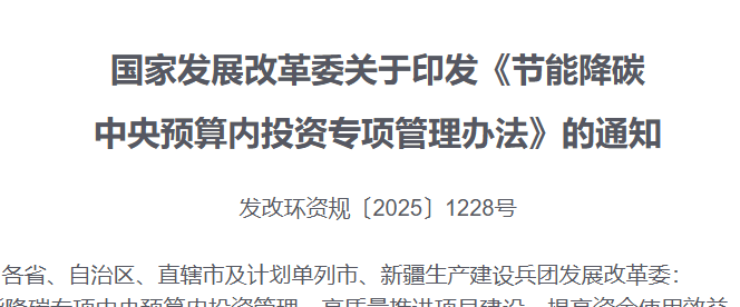 为加强和规范节能降碳专项中央预算内投资管理,高质量推进项目建设,提高资金使用效益,我们制定了《节能降碳中央预算内投资专项管理办法》,现予印发,请遵照执行。...
