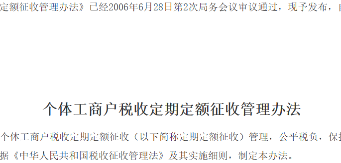 《个体工商户税收定期定额征收管理办法》已经2006年6月28日第2次局务会议审议通过,现予发布,自2007年1月1日起施行。...