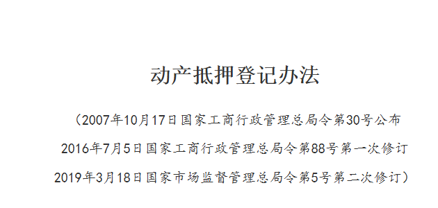 《动产抵押登记办法》已于2019年3月18日经国家市场监督管理总局2019年第4次局务会议审议通过,现予公布,自2019年4月20日起施行。...