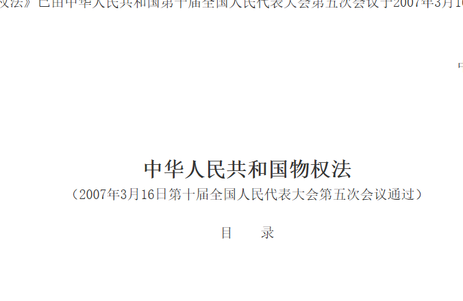 《中华人民共和国物权法》已由中华人民共和国第十届全国人民代表大会第五次会议于2007年3月16日通过,现予公布,自2007年10月1日起施行。...