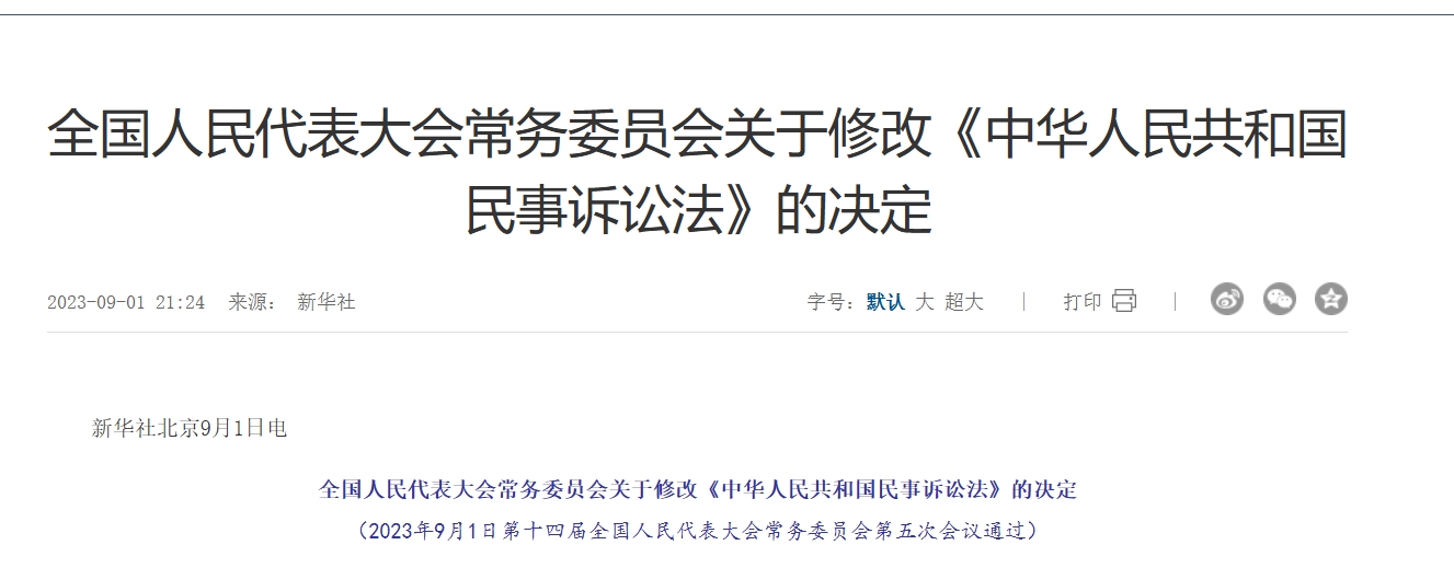 全国人民代表大会常务委员会关于修改《中华人民共和国民事诉讼法》的决定 (2023年9月1日第十四届全国人民代表大会常务委员会第五次会议通过)...