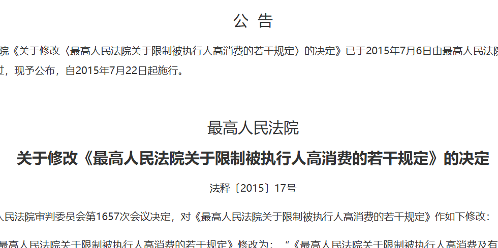 (2010年5月17日最高人民法院审判委员会第1487次会议通过,根据2015年7月6日最高人民法院审判委员会第1657次会议通过的《最高人民法院关于修改〈最高人民法院关于限制被执行人高消费的若干规定...