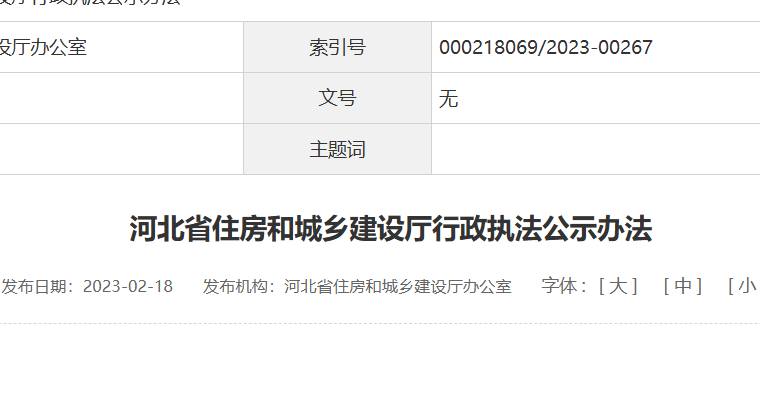 本办法自印发之日起施行,2018年2月24日印发的《河北省住房和城乡建设厅行政执法公示办法(试行)》同时废止。...