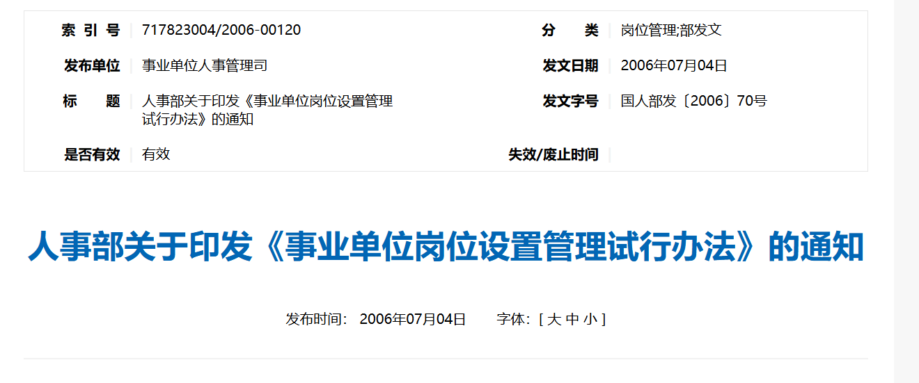 《中共中央 国务院关于进一步加强人才工作的决定》和《国务院办公厅转发人事部关于在事业单位试行人员聘用制度意见的通知》要求,在事业单位推行聘用制度和岗位管理制度。试行事业单位岗位设置管理制度,是推进事业...