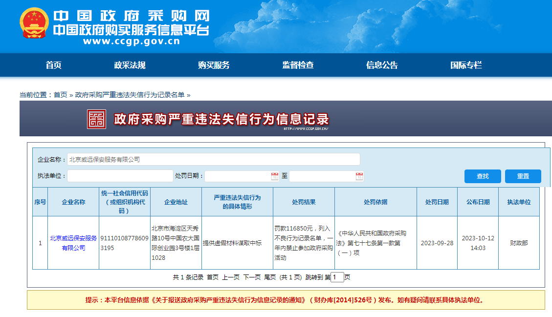 政府采购严重违法失信行为信息记录...