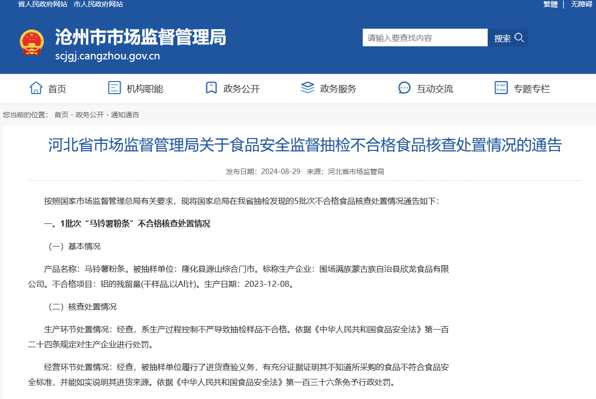 河北省市场监督管理局关于食品安全监督抽检不合格食品核查处置情况的通告...