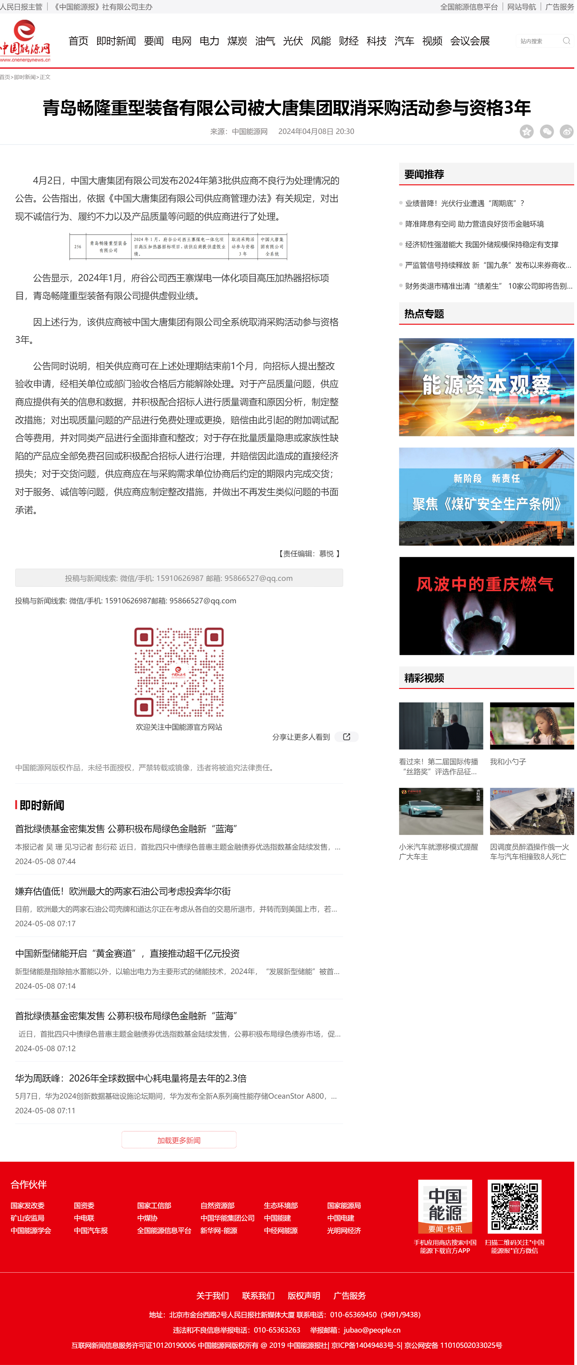某重型装备有限公司被大唐集团取消采购活动参与资格3年