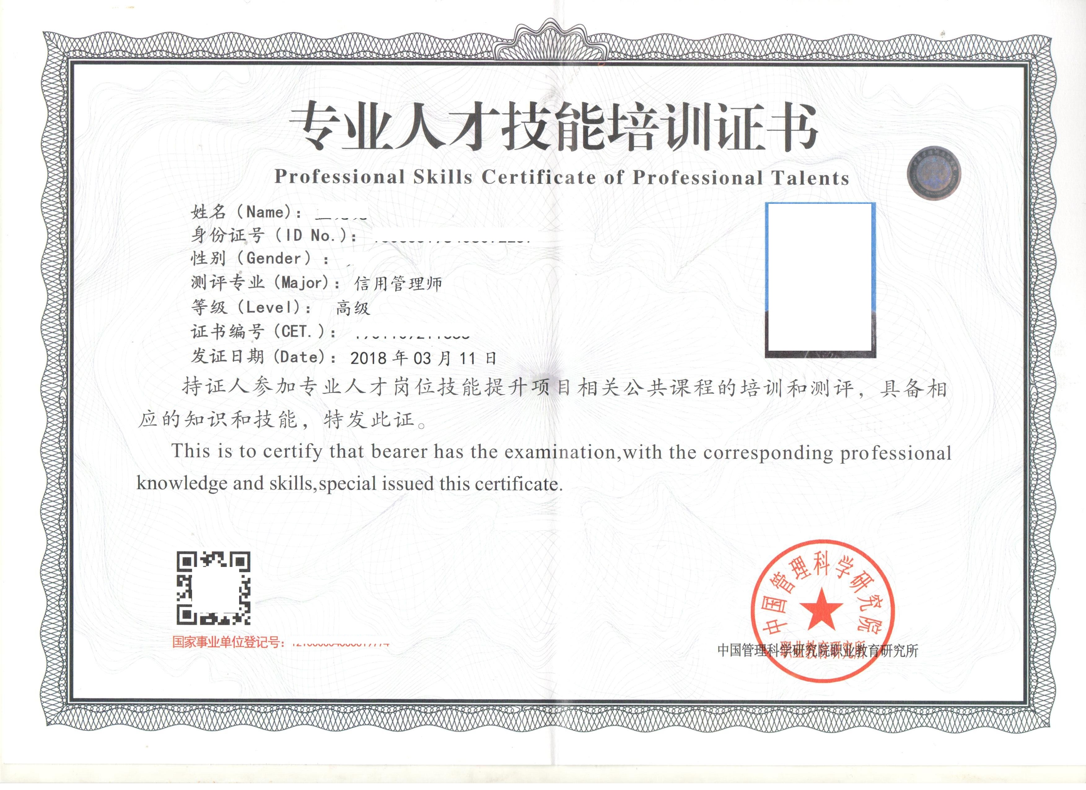 凡是通过忠信信用公司获得的【信用管理师证书】,我司均提供价值3000元【信用修复】培训课,使您在信用领域畅通无阻。